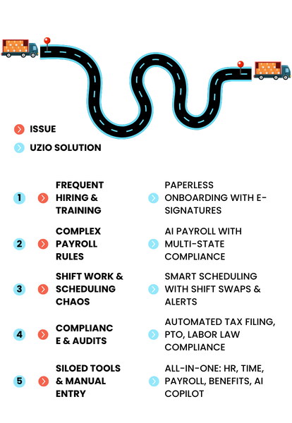 From compliance to convenience, UZIO helps logistics companies save time, reduce errors, and operate more efficiently — with AI powering every step.